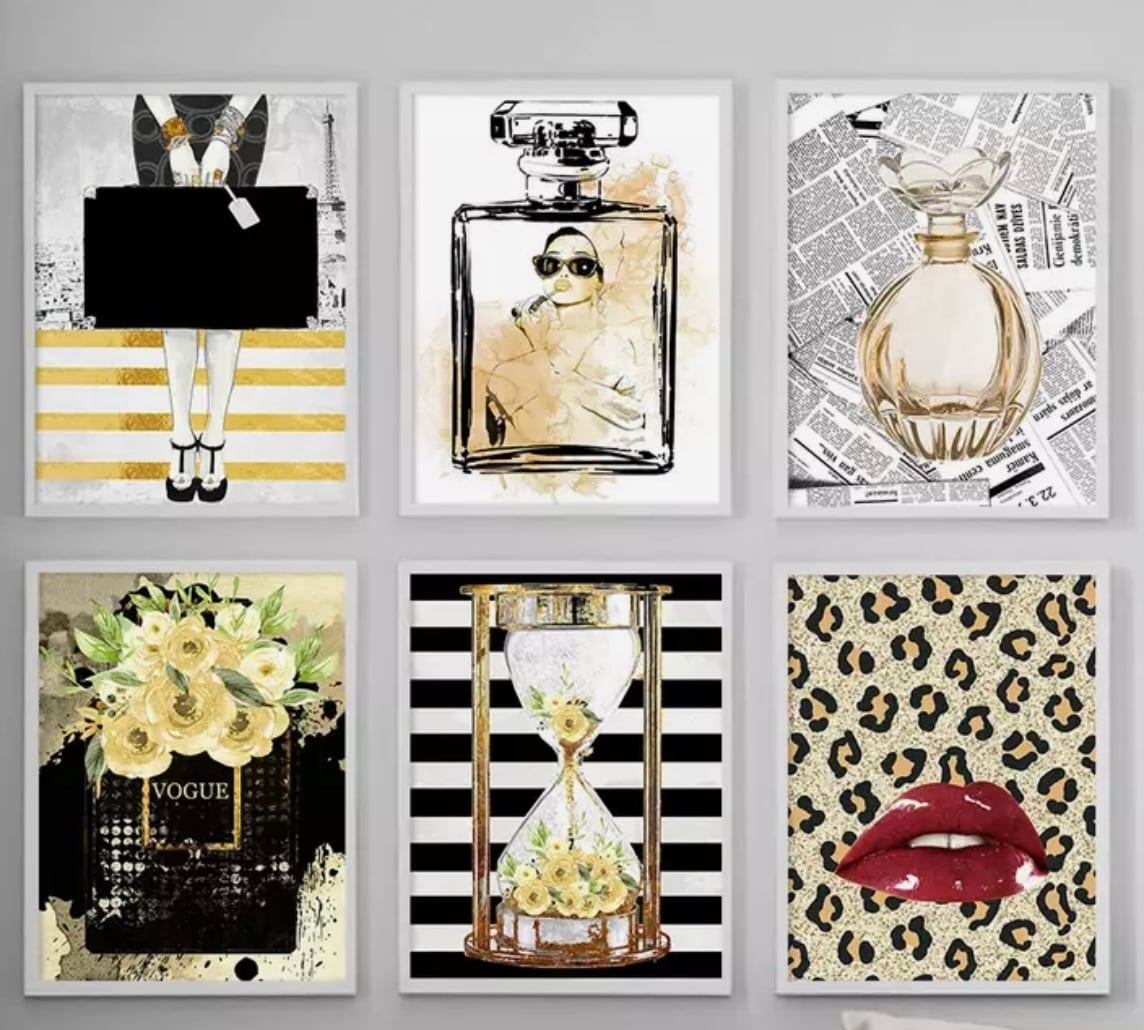 ガーリーなイラストはお部屋をファッショナブルにしてくれます。ゴールドやブラックのフレームに入れて、グラムスタイルなインテリアとしても。